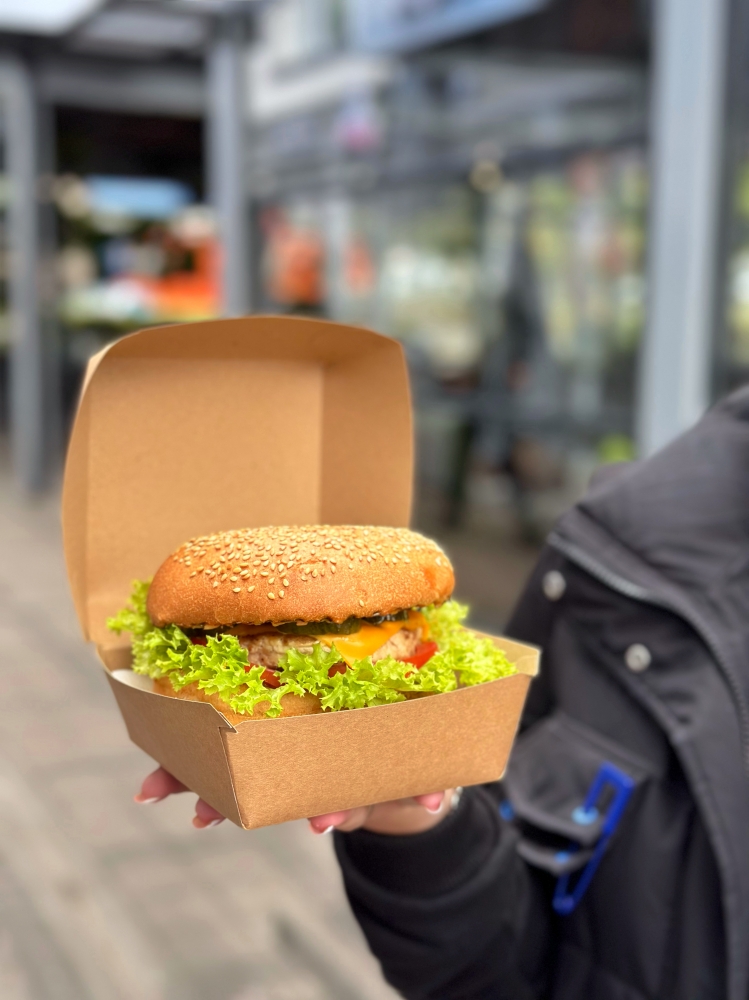 Чізбургер курячий – це поєднання соковитої котлети-гриль із ніжної курятини, свіжого помідора та солоного огірка, доповнене хрустким листочком салату й фірмовим бургерним соусом. Кожен інгредієнт збалансовано, щоб підкреслити природний смак м’яса та надати страві різноманітних текстур. Легкість овочів і пікантність соусу роблять цей бургер чудовим варіантом для швидкого та ситного перекусу.