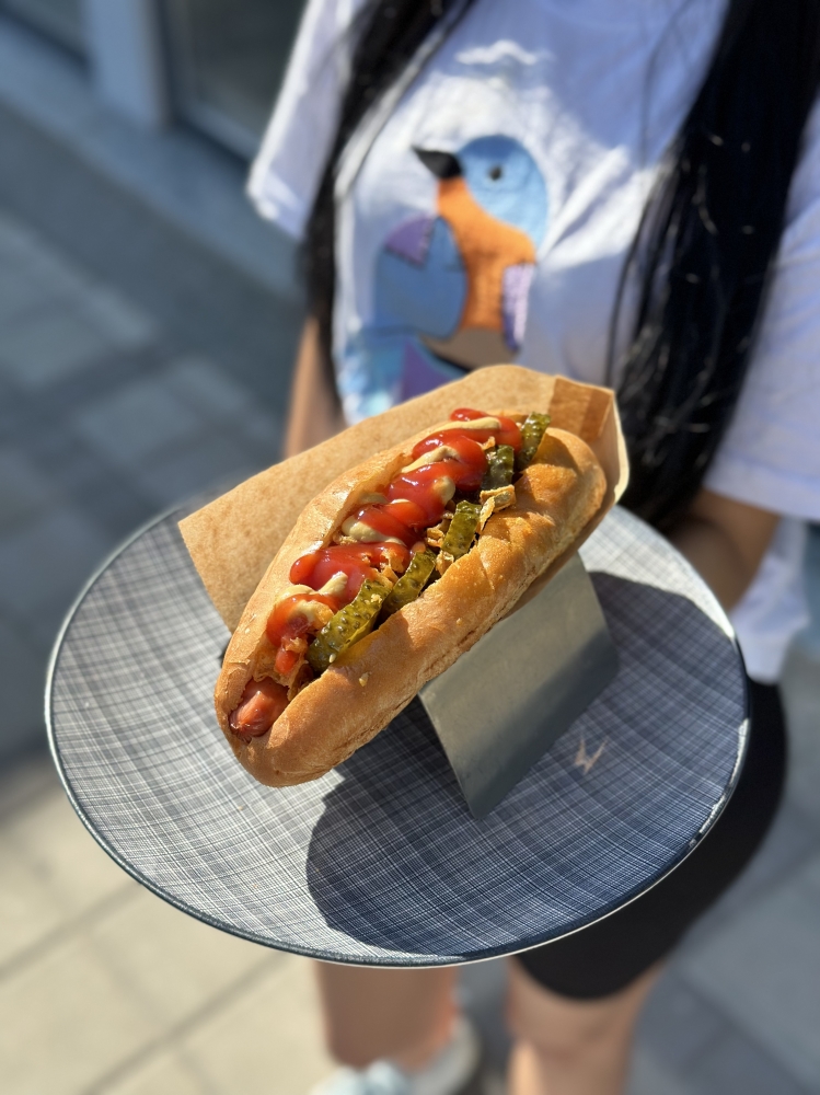 Хот-дог мисливський – це поєднання насиченого смаку та апетитної текстури. Мисливська сосиска «Маршалок», відома своїм ароматом і соковитістю, доповнена ніжною булочкою, випеченою у власній пекарні. Хрумка морква по-корейськи додає пікантності, створюючи яскравий контраст. Класичні соуси – кетчуп, майонез і гірчиця – підкреслюють багатство смаків, роблячи цей хот-дог ідеальним вибором для швидкого і смачного перекусу.