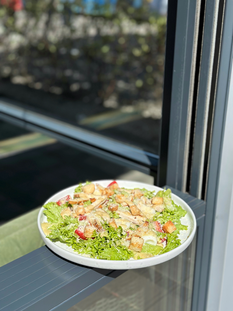 Салат «Цезар з куркою» — смачна та збалансована страва, що поєднує ніжне філе курки та хрустке листя салату «Айсберг». Соковиті помідори чері, бекон та хрусткі крутони створюють ідеальний смаковий баланс. Перепелині яйця додають ніжності, а соус із анчоусів і пармезан дарують страві виразний та насичений смак. Це вишукане поєднання інгредієнтів, яке стане чудовим вибором для будь-якої пори року.
