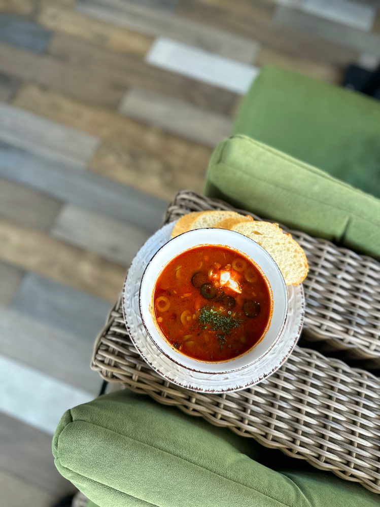 Солянка 300 мл – це ситна і ароматна страва, яка поєднує в собі традиції української кухні. У її складі відбірна телятина, шматочки солоних огірків, насичена томатна паста та соковиті оливки, які створюють гармонійний смак. Лимон додає легку кислинку, а свіжа петрушка завершує композицію. Ідеальний вибір для швидкого обіду чи вечері, коли хочеться тепла й домашнього затишку.