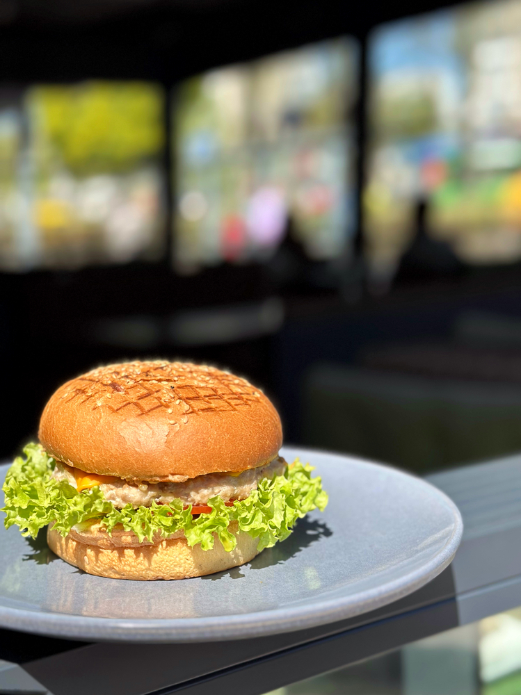 Гамбургер курячий – це вдале поєднання ніжного смаку та ситності. В основі – котлета, приготована на грилі з добірної курятини, яка має соковиту текстуру та апетитний аромат. Свіжість додають скибочки помідора, а солоний огірок підкреслює смакові нюанси. Лист салату дарує легкість, а фірмовий бургерний соус завершує композицію, створюючи гармонійний букет смаку. Ідеальний вибір для швидкого перекусу, коли хочеться смачного та легкого задоволення.