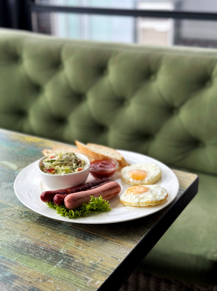 Класичний сніданок – це збалансована та ситна страва, яка забезпечує енергією на весь день. Ніжна яєчня з двох яєць приготована до ідеальної консистенції, супроводжується двома ароматними мисливськими сосисками та однією молочною сосискою, що додають насиченого смаку. Салат з капусти приносить свіжість та легкість, а хлібні тости додають хрусткої текстури. Цей сніданок ідеально підходить для тих, хто цінує традиційні смаки та ситний початок дня.